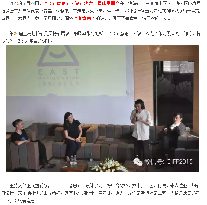 第36屆上海虹橋家具展:一起讓EAST更有意思 意思設(shè)計(jì)沙龍媒體見(jiàn)面會(huì)