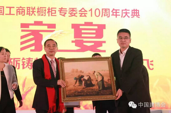 中國(guó)建博會(huì)代表與全國(guó)工商聯(lián)櫥柜專委會(huì)會(huì)長(zhǎng)、歐派家居集團(tuán)董事長(zhǎng)姚良松先生互贈(zèng)禮品