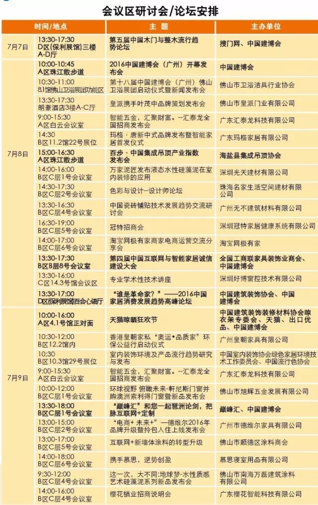 2016中國建博會(廣州)會議區(qū)研討會/論壇安排