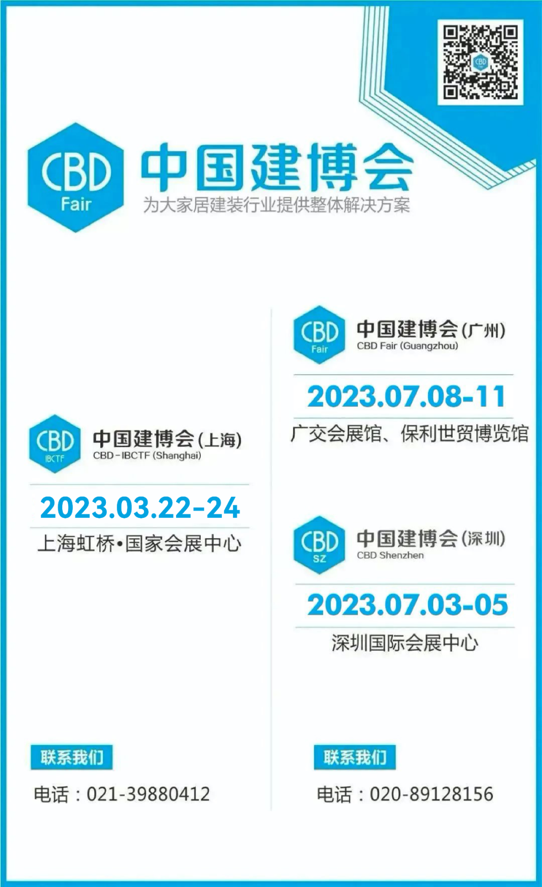 2023年3月月22-24日,中國(guó)建博會(huì)(上海)將在上海虹橋國(guó)家會(huì)展中心舉辦,敬請(qǐng)期待!