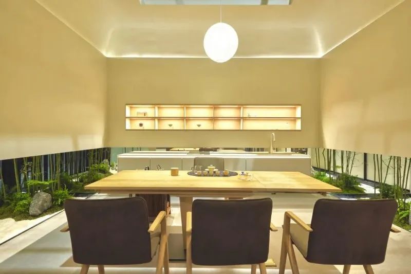 此次DOWOOD大木以“人亦是木,城市即林”為主題亮相此次中國(guó)建博會(huì)(上海)。展廳的整體設(shè)計(jì)保持品牌一貫的現(xiàn)代、自然、人文價(jià)值等產(chǎn)品理念,劃分為廚餐廳、客餐廳和臥房區(qū)三大區(qū)域。其中,兼顧功能性、美觀(guān)性和儲(chǔ)物性的酒窖空間設(shè)計(jì);以法國(guó)歐橡與金屬元素相結(jié)合打造的廚房空間本真系列;以多材質(zhì)的產(chǎn)品,包括金屬、布衣和免漆等材質(zhì)所打造的臥房區(qū),都吸引著不少觀(guān)展者前來(lái)體驗(yàn)。
