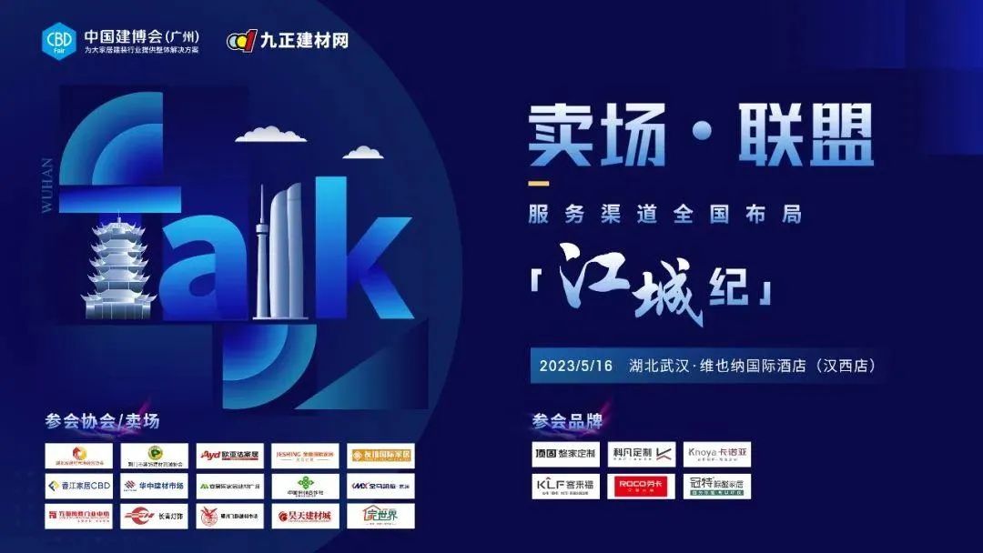 5月16日,中國建博會(廣州)聯(lián)合九正建材網(wǎng)組織的【賣場·聯(lián)盟】「江城紀(jì)」活動在湖北武漢成功舉辦。經(jīng)多層篩選,頂固、客來福、卡諾亞、勞卡、冠特定制、科凡定制等6家企業(yè)代表參與了本場活動。6家品牌企業(yè)與商協(xié)會領(lǐng)導(dǎo)、華中地區(qū)優(yōu)秀賣場代表、周邊優(yōu)質(zhì)大商和設(shè)計師等超60名嘉賓齊聚武漢維也納國際酒店(漢西店),共享華中優(yōu)秀賣場資源,共拓華中商貿(mào)流通渠道!