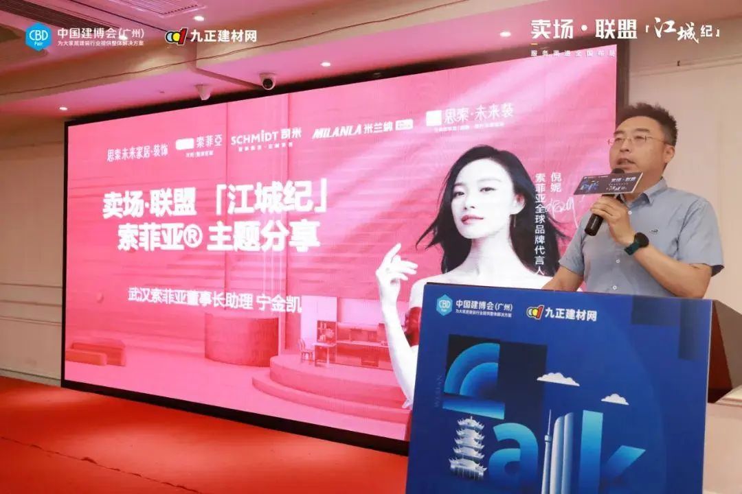 優(yōu)秀經(jīng)銷商代表圍繞公司成長和發(fā)展之路作出了主題分享。索菲亞整家定制武漢公司董事長助理寧金凱,作為優(yōu)秀經(jīng)銷商代表,分享了索菲亞在武漢踔厲奮發(fā)的二十一年里,一直在重點(diǎn)引導(dǎo)客戶需求、提升客戶體驗(yàn),引入數(shù)字化運(yùn)營系統(tǒng),精進(jìn)管理和服務(wù)團(tuán)隊(duì)等方面的經(jīng)驗(yàn)。