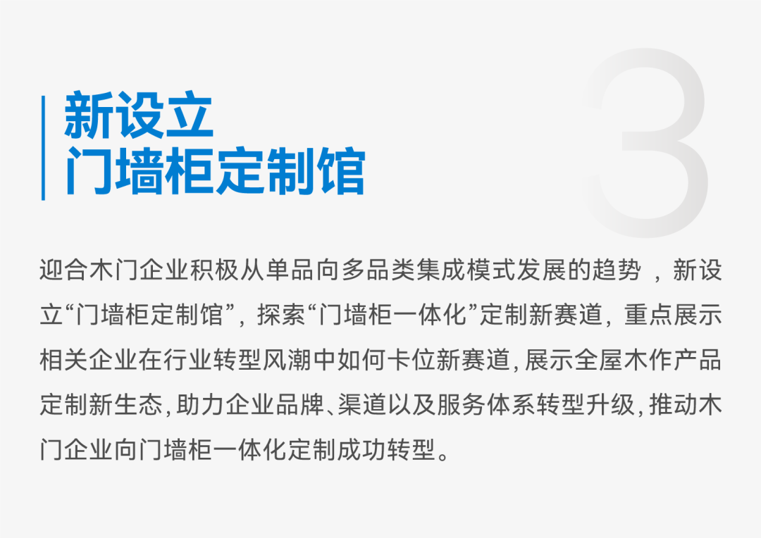2023年,中國建博會(廣州)根據(jù)行業(yè)發(fā)展特點(diǎn)和趨勢,進(jìn)一步完善了展出題材結(jié)構(gòu),開辟了一些新展區(qū),使2023中國建博會(廣州)形成了全新的“定制、系統(tǒng)、智能、設(shè)計(jì)、材藝”五大主題展區(qū)及一個(gè)廣州衛(wèi)博會的“5+1”全新布局,能更好地助力大家居建裝行業(yè)實(shí)現(xiàn)高質(zhì)量發(fā)展。