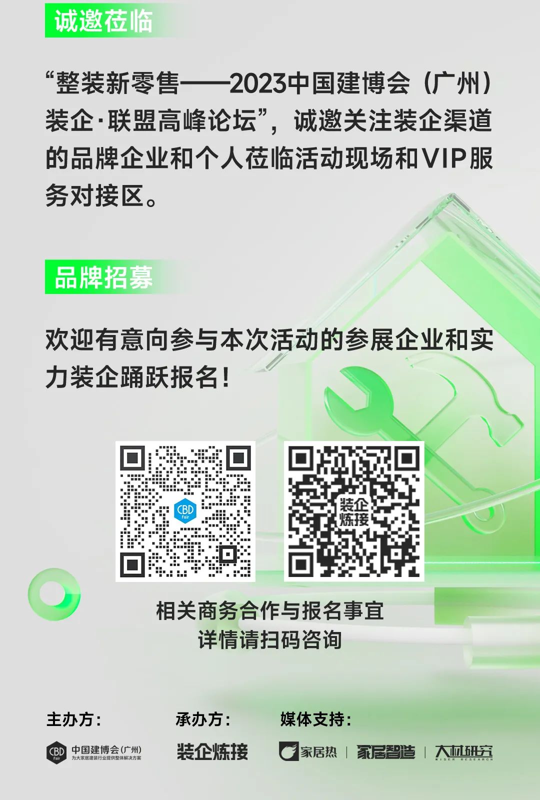 作為大家居建裝行業(yè)全球第一展,中國(guó)建博會(huì)(廣州)針對(duì)廣大參展企業(yè)發(fā)力整裝新市場(chǎng)、拓展裝企新生態(tài)的需求,協(xié)同裝企煉接、家居熱、家居智造、大材研究等創(chuàng)新知識(shí)傳媒矩陣、行業(yè)組織及媒體,發(fā)起“裝企 ?聯(lián)盟”增值服務(wù),以裝企為創(chuàng)新渠道著力點(diǎn),構(gòu)建“會(huì)展平臺(tái)+品牌企業(yè)+裝企”新型供應(yīng)鏈體系,助力參展企業(yè)與裝企之間精準(zhǔn)對(duì)接和實(shí)效合作,為彼此帶來(lái)新的增長(zhǎng)機(jī)遇。