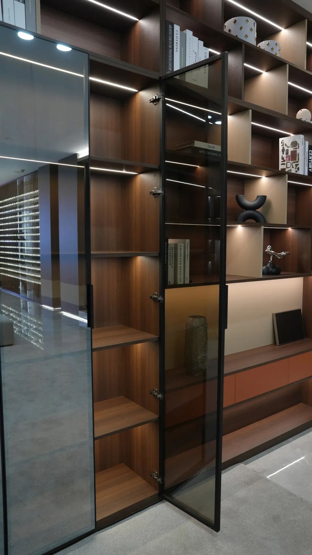 書(shū)香門(mén)第-客廳柜采用名貴黑胡桃木天然木皮與時(shí)尚元素的科技木皮作為飾面,性能優(yōu)越的歐松板作為基材,以環(huán)保水性漆涂裝,以精巧圓潤(rùn)的圓弧工藝,搭配具有科技感的五金、亮化輔材,符合年輕消費(fèi)群體審美趨勢(shì)、使用功能的衣帽間定制衣柜產(chǎn)品,彰顯精湛工藝、優(yōu)雅品味與高端品質(zhì)。月光寶盒-衣柜采用名貴黑胡桃木天然木皮與時(shí)尚元素的科技木皮作為飾面,性能優(yōu)越的歐松板作為基材,以環(huán)保水性漆涂裝,以精巧圓潤(rùn)的圓弧工藝,搭配具有科技感的五金、亮化輔材,符合年輕消費(fèi)群體審美趨勢(shì)、使用功能的衣帽間定制衣柜產(chǎn)品,彰顯精湛工藝、優(yōu)雅品味與高端品質(zhì)。
