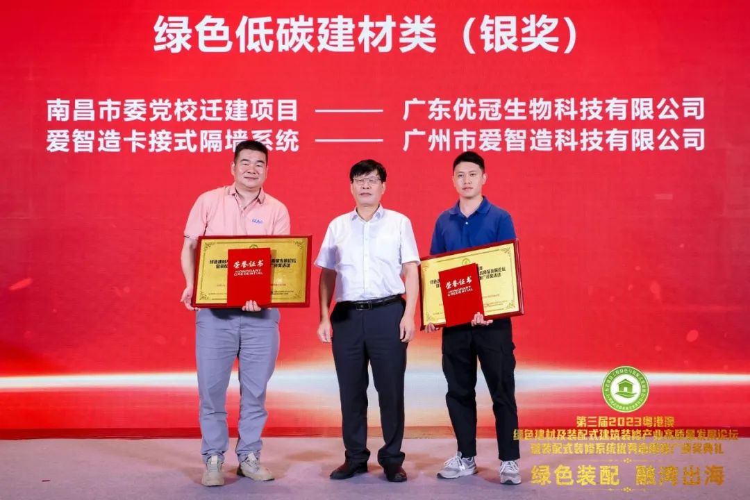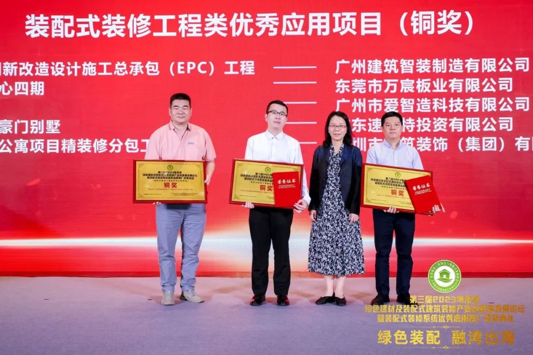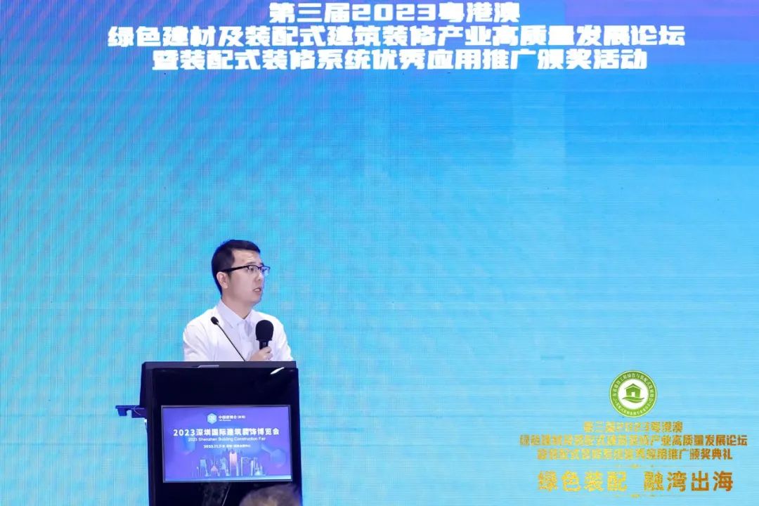 11月7日晚,“2023粵港澳綠色建材及裝配式建筑裝修產(chǎn)業(yè)高質量發(fā)展論壇暨裝配式裝修系統(tǒng)優(yōu)秀應用推廣頒獎活動”在深圳皇冠假日酒店會展灣大宴會廳隆重舉辦。多位綠色建材及裝配式裝修產(chǎn)業(yè)的行業(yè)大咖和企業(yè)代表云集現(xiàn)場,共同表彰2023年度綠色建材與裝配式裝修產(chǎn)業(yè)的優(yōu)秀新技術、新材料、新應用。