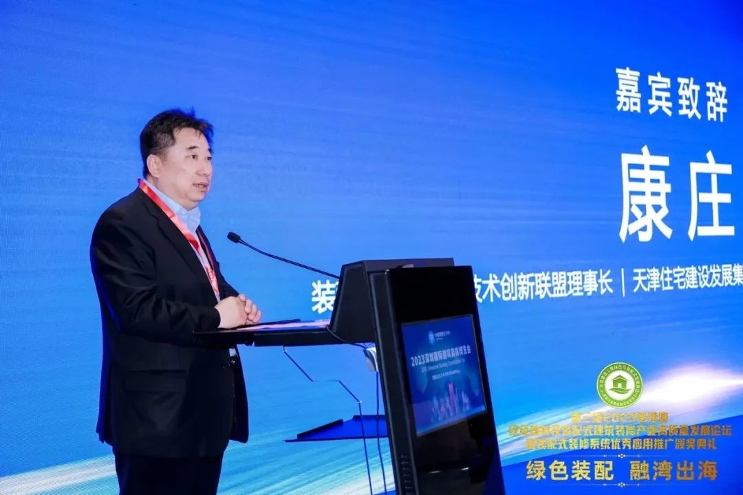 住房和城鄉(xiāng)建設部科技與產(chǎn)業(yè)發(fā)展中心副主任陳偉,裝配式建筑產(chǎn)業(yè)技術創(chuàng)新聯(lián)盟理事長、天津住宅建設發(fā)展集團有限公司黨委書記、董事長、總裁康莊,廣東省建設工程綠色與裝配式發(fā)展協(xié)會會長曹大燕,香港建造業(yè)議會內地事務總經(jīng)理郭冠鴻領導進行了嘉賓致辭,共同為綠色建材及裝配式建筑裝修行業(yè)的優(yōu)秀協(xié)會、企業(yè)和相關從業(yè)人員加油鼓勁,分享“雙碳”背景下的新型建筑工業(yè)化關鍵時期,如何更高效地做好相關工作。