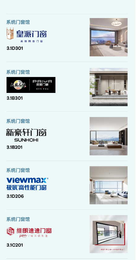 2024中國建博會(上海)重磅打造系統(tǒng)門窗展區(qū)。3號館及4.1號系統(tǒng)門窗館展出規(guī)模超4萬㎡,將囊括系統(tǒng)門窗、鋁合金門窗、鋁木門窗、陽臺空間、 陽光房及門窗配套等品類,齊聚齊聚皇派、派雅、新豪軒、米蘭之窗、瓦瑟、極景、德技優(yōu)品、維朗、易歐斯、飛宇、帝奧斯、智宬軒、靜贏、捷陽、智赫、遇美、海螺等門窗品牌,全力打造一個高效品宣、極速觸達、精準輻射的“窗口”,助力企業(yè)加速出圈!