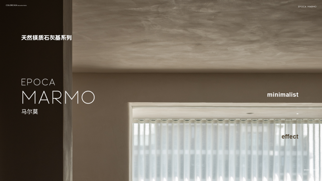 馬爾莫(EPOCA MARMO)是一款為傳統(tǒng)Marmorino風(fēng)格量身定制的石灰基產(chǎn)品,可以在墻面復(fù)刻拋光大理石的精美效果,質(zhì)地光滑堅(jiān)硬,選材天然,健康環(huán)保。斯諾帕(SINOPIA)是一款可以在墻面營造出仿麂皮效果和質(zhì)感的石灰基產(chǎn)品,集天然石材的硬度和柔軟的觸感于一體,可以呈現(xiàn)出高度的美學(xué)效果。
