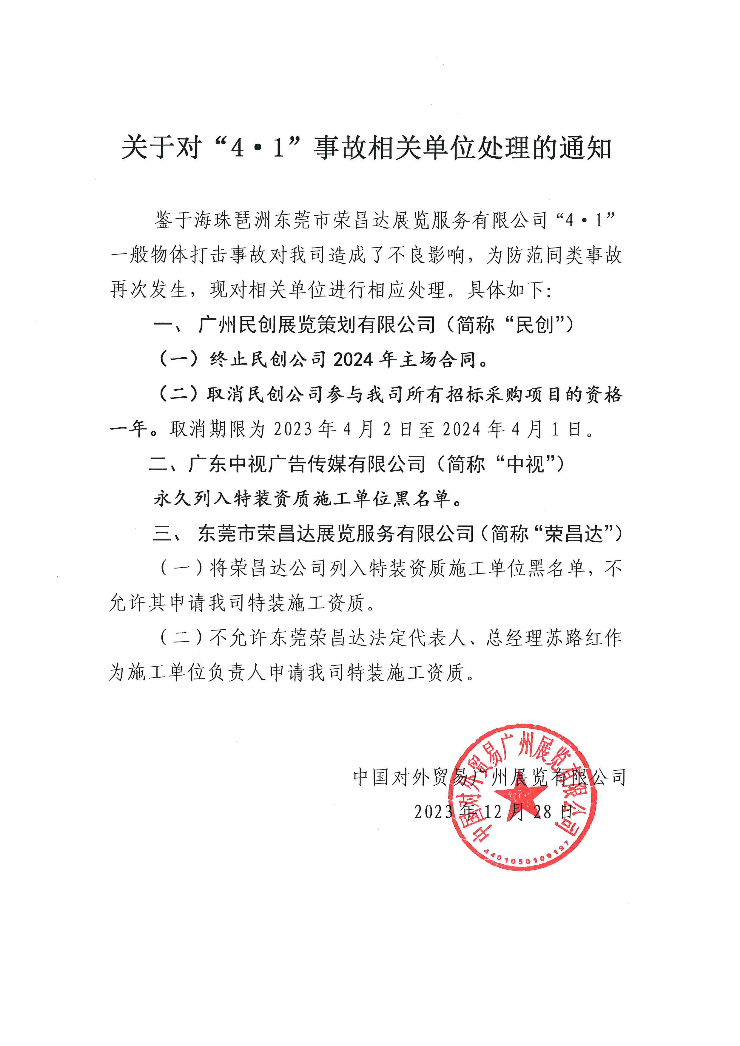 關(guān)于對(duì)4.1事故相關(guān)責(zé)任單位進(jìn)行處理的通知