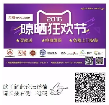 除了展會現(xiàn)場內容豐富多彩之外,本次展會上大會還將攜手天貓、中國建筑裝飾裝修材料協(xié)會晾衣架專業(yè)委員會共同打造“天貓晾曬狂歡節(jié)”,屆時主辦三方領導將于7月9日于A區(qū)珠江散步道公共區(qū)域共同出席本次晾曬節(jié)開幕儀式。并且于展會期間實現(xiàn)展會與天貓平臺的線上線下聯(lián)動,邀請眾多行業(yè)企業(yè)和全國消費者共同參與本次活動,享受全系列產品的促銷優(yōu)惠。此舉在建材家居展會中尚屬首例,也是中國建博會在推進“互聯(lián)網+”戰(zhàn)略中一次全新嘗試。