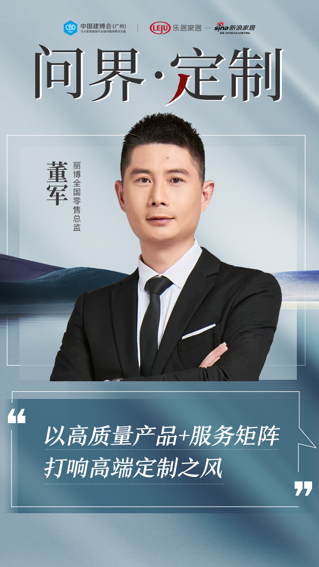 對即將到來的2023中國建博會(廣州),董軍由衷地表示“中國建博會(廣州)作為大家居建裝行業(yè)全球第一展是最好的品牌展示與趨勢交流平臺,麗博在過去七年始終與其保持緊密的合作,未來亦將如此。祝福2023中國建博會(廣州)能夠繼續(xù)推陳出新,帶來更多定制新風(fēng)尚,與定制全產(chǎn)業(yè)鏈攜手前行?!?br>