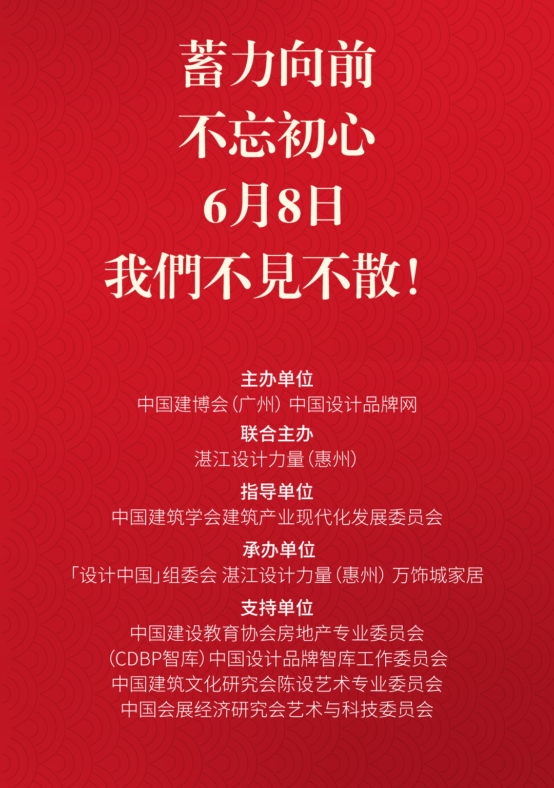 由中國建博會(廣州)、中國設(shè)計(jì)品牌網(wǎng)(中國設(shè)計(jì)品牌計(jì)劃)聯(lián)合發(fā)起的「設(shè)計(jì)中國」以“中國文化”價(jià)值創(chuàng)新為主張,致力于為現(xiàn)代人居生活和城市發(fā)展貢獻(xiàn)中國智慧和中國方案。組委會聯(lián)動全國設(shè)計(jì)行業(yè)資源,通過策劃系列活動,持續(xù)擴(kuò)大「設(shè)計(jì)中國」影響力,促進(jìn)全國設(shè)計(jì)力量高質(zhì)量發(fā)展,彰顯設(shè)計(jì)行業(yè)頭部勢能與社會價(jià)值貢獻(xiàn)。