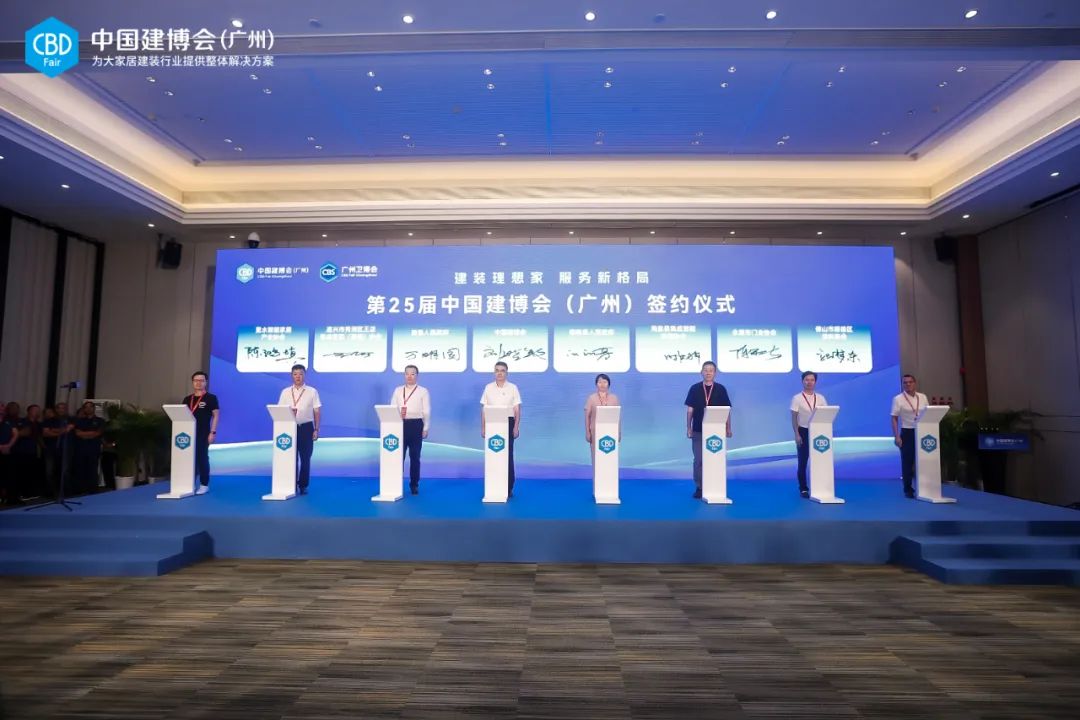 開幕式上舉辦了中國建博會(廣州)與中國建筑裝飾行業(yè)具有代表性的七大產(chǎn)業(yè)基地戰(zhàn)略合作簽約儀式。中國對外貿(mào)易廣州展覽有限公司總經(jīng)理劉曉敏、臨朐縣委書記劉艷芳、費縣人民政府縣長萬明國、海鹽縣集成智能家居協(xié)會會長時沈祥、嘉興市秀洲區(qū)王店集成裝飾(頂墻)協(xié)會會長張軻、永康市門業(yè)協(xié)會秘書長陳利新、里水智能家居產(chǎn)業(yè)協(xié)會會長陳鴻填、佛山市順德區(qū)涂料商會秘書長張夢東,現(xiàn)場簽訂合作意向書。