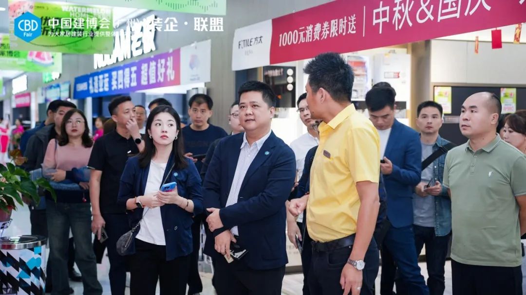 ▲“裝企?聯(lián)盟”參訪團(tuán)隊(duì)在方林裝飾展示廳現(xiàn)場(chǎng)