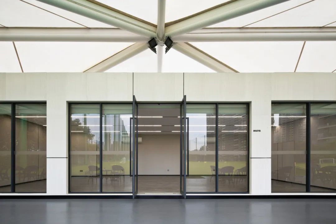 整個(gè)建筑由頂梁、次梁、地梁及地面材料等模塊組成,可進(jìn)行整體式拆裝遷移、部件可再利用回收,最大程度降低對(duì)場(chǎng)地環(huán)境的依賴。室內(nèi)采用快裝隔墻體系,能提供良好的隔音私密性,而采用的睿住建筑科技的裝配式墻板,具有A級(jí)防火、防滲漏、隔熱、保溫好等性能,保證球員們極致的運(yùn)動(dòng)體驗(yàn)。同時(shí),這一由睿住建筑科技自主研發(fā)的裝配化內(nèi)裝技術(shù)體系,能解決傳統(tǒng)裝修周期長(zhǎng)的難題,如搭積木一樣組裝、拆卸,且能保持空間美感,實(shí)現(xiàn)室內(nèi)裝修100%裝配率。整體設(shè)計(jì)達(dá)8級(jí)抗震、10級(jí)抗風(fēng)的標(biāo)準(zhǔn)。