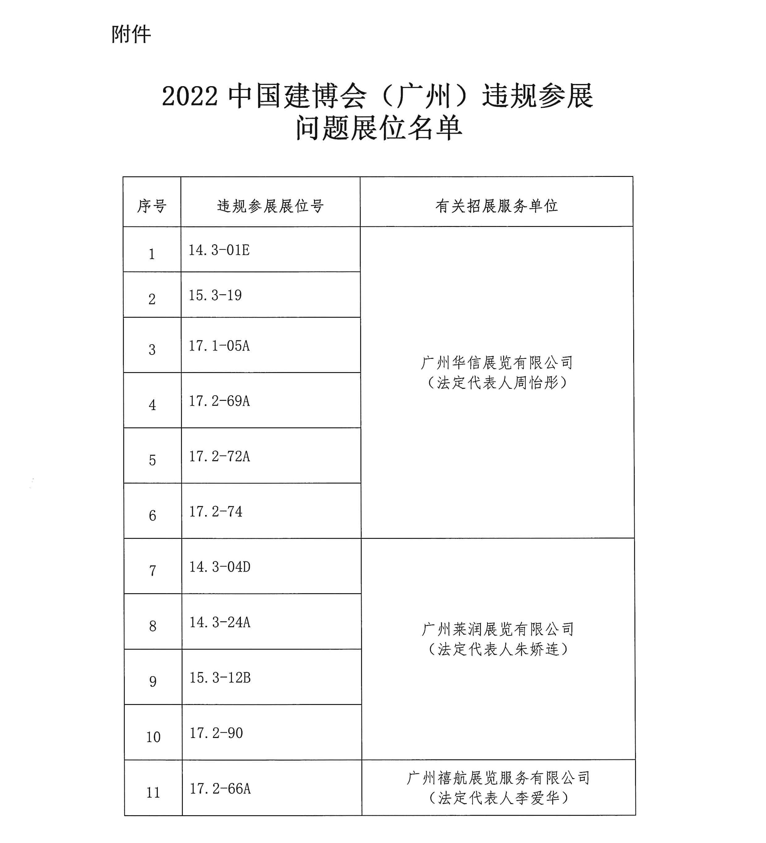 關(guān)于對有關(guān)招徠問題展位的招展服務(wù)單位的處理通知